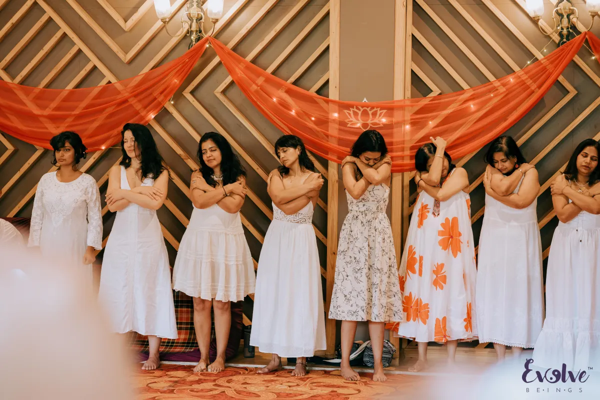 Experience dynamic techniques like Osho’s meditations and dance-based catharsis to clear stagnant energy and enter profound states of presence and peace.